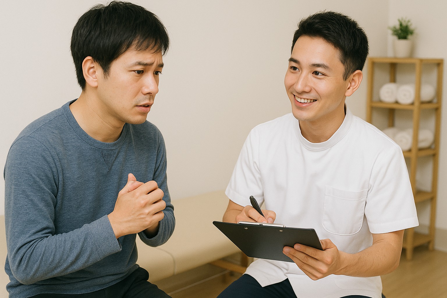 最初の数回は施術をしても骨盤が歪んだ状態に戻りやすいため、数日から1週間ごとに数回通う必要があります。